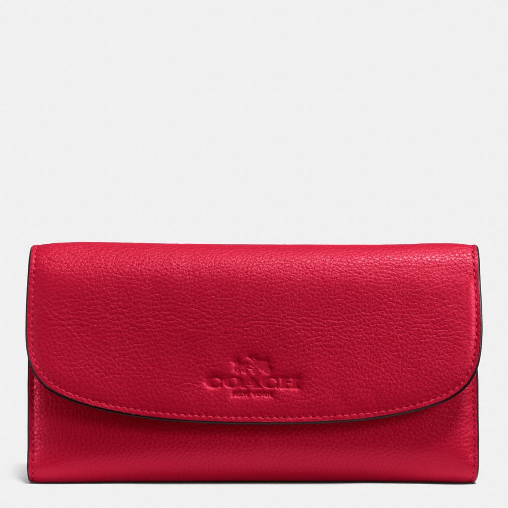 1. COACH f52715 - PEBBLE LEATHER CHECKBOOK WALLET - IMITATION GOLD/TRUE RED