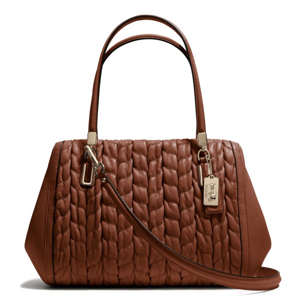 COACH F25985 MADISON GATHERED CHEVRON LEATHER MADELINE EAST/WEST SATCHEL LIGHT-GOLD/CHESTNUT HANDBAGS