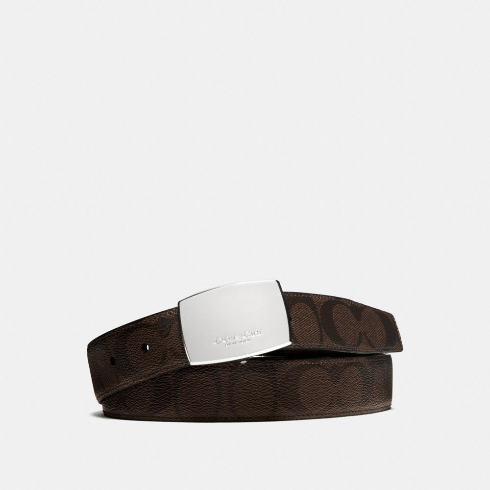 1. COACH f64828 - DRESS PLAQUE CUT-TO-SIZE REVERSIBLE SIGNATURE COATED CANVAS BELT - MAHOGANY/BROWN