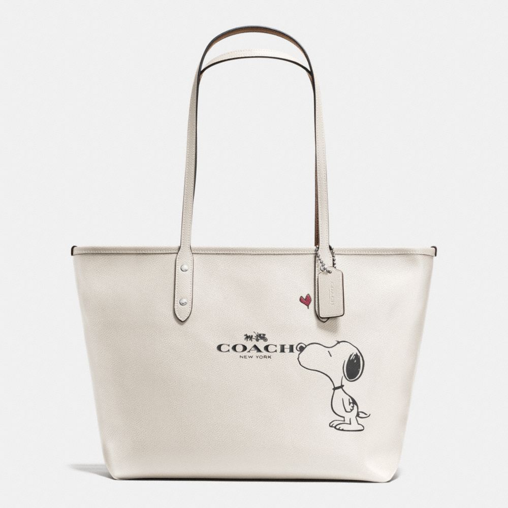 COACH F37273 - COACH X PEANUTS CITY ZIP TOTE IN CALF LEATHER - SILVER/CHALK - HANDBAGS