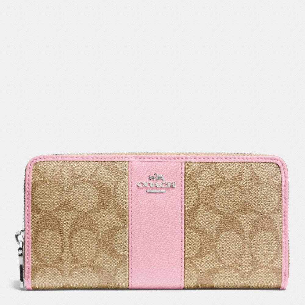 1. COACH f52859 - ACCORDION ZIP WALLET IN SIGNATURE CANVAS WITH LEATHER - SILVER/LIGHT KHAKI/PETAL