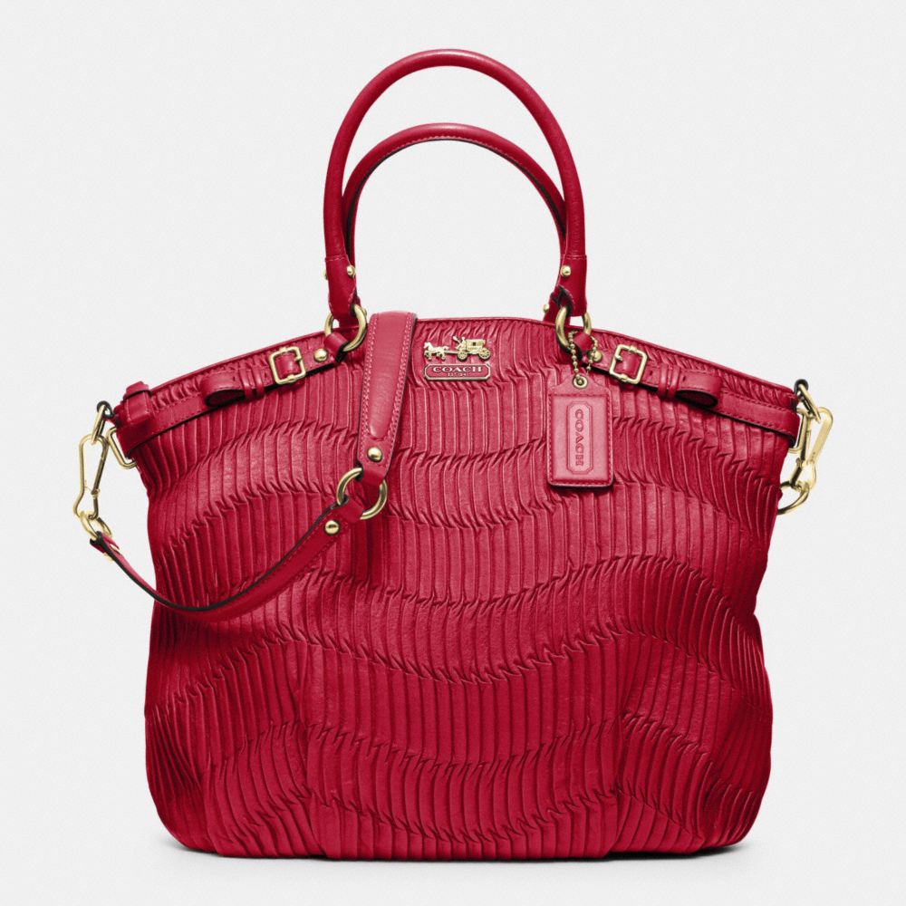COACH F33371 MADISON GATHERED LEATHER LINDSEY NORTH/SOUTH SATCHEL - BRASS/CORAL RED(click the link before for more detail)