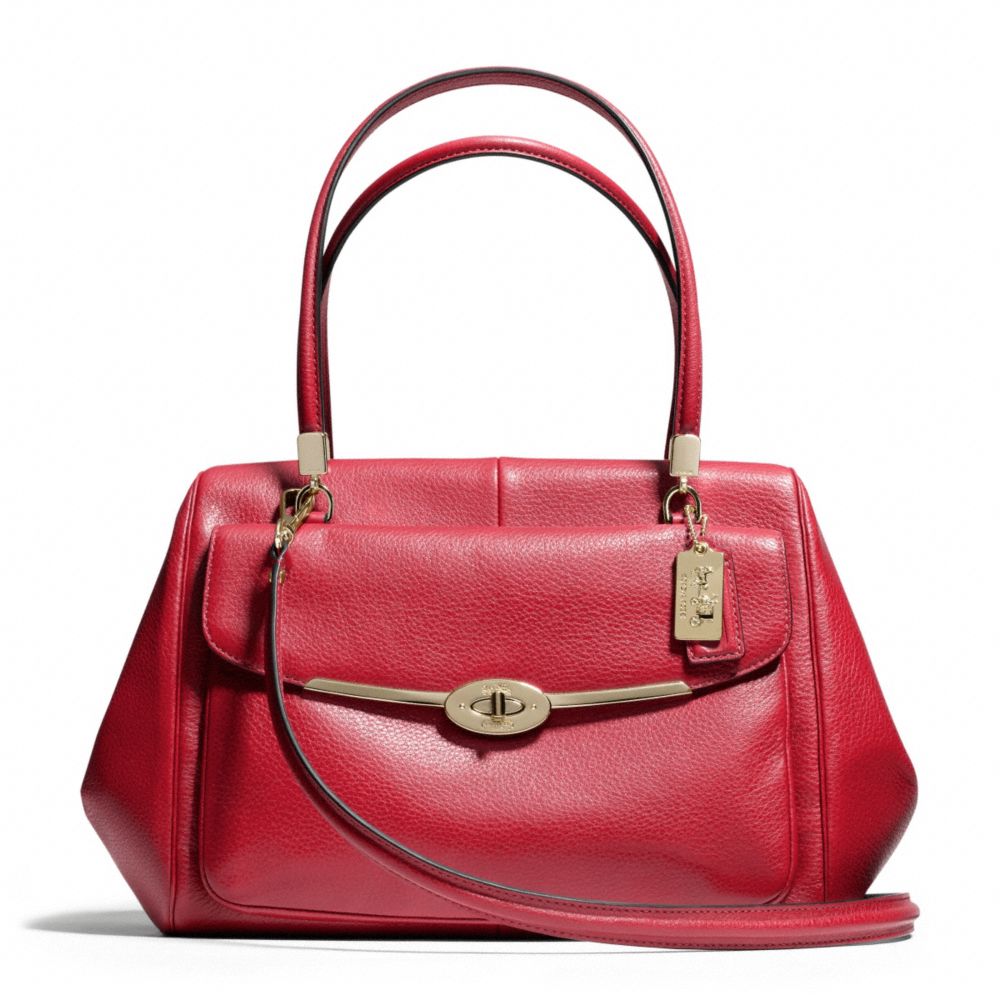 COACH F25166 - MADISON MADELINE EAST/WEST SATCHEL IN LEATHER - LIGHT GOLD/SCARLET (click the link before for more detail)