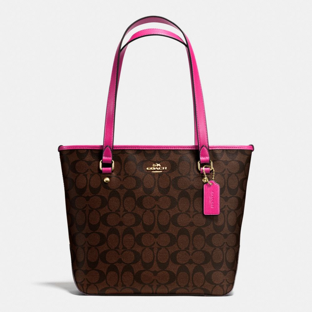 COACH F34603 ZIP TOP TOTE IN SIGNATURE CANVAS - IMITATION GOLD/BROWN/PINK RUBY(click the link before for more detail)