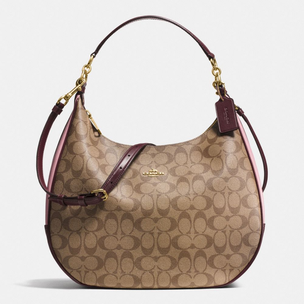 1. COACH f57491 - HARLEY HOBO IN COLORBLOCK SIGNATURE - IMITATION GOLD/KHAKI OXBLOOD MULTI