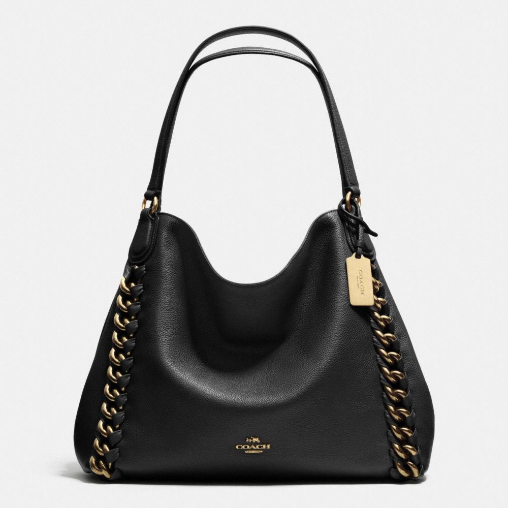 COACH F35819 JUMBO EDIE SHOULDER BAG IN WHIPLASH LEATHER LIGHT-GOLD/BLACK HANDBAGS