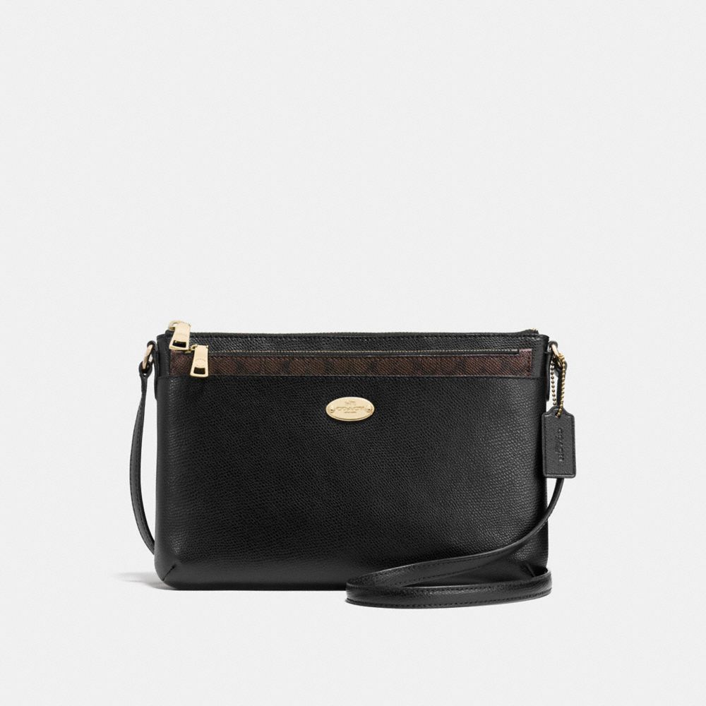 1. COACH f57788 - EAST/WEST CROSSBODY WITH POP UP POUCH IN CROSSGRAIN LEATHER - IMITATION GOLD/BLACK