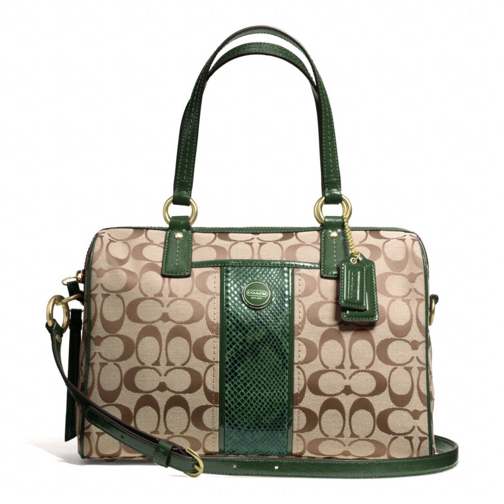 COACH F24884 - SIGNATURE STRIPE PYTHON STRIPE SATCHEL - BRASS/KHAKI/GREEN - HANDBAGS