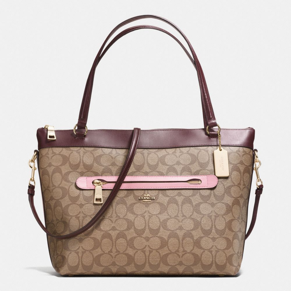 1. COACH f57611 - TYLER TOTE IN COLORBLOCK SIGNATURE - IMITATION GOLD/KHAKI OXBLOOD MULTI