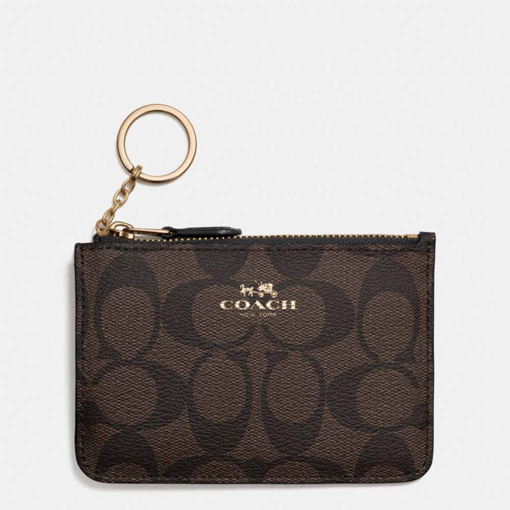 1. COACH f63923 - KEY POUCH WITH GUSSET IN SIGNATURE - LIGHT GOLD/BROWN/BLACK