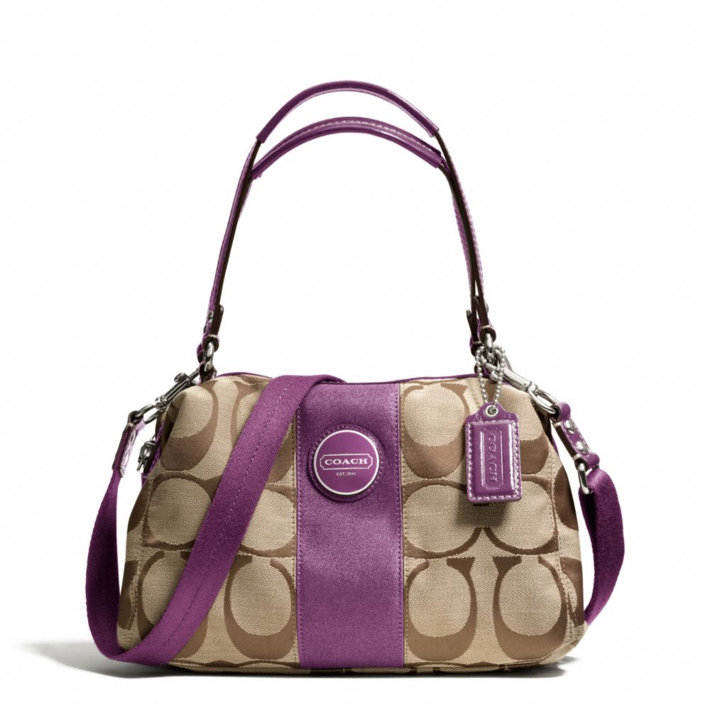 COACH F15518 - SIGNATURE STRIPE CONVERTIBLE SATCHEL - SILVER/KHAKI/PLUM - HANDBAGS