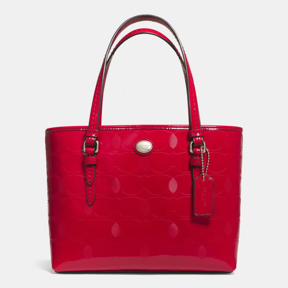 COACH F52534 - PEYTON LINEAR C EMBOSSED PATENT TOP HANDLE TOTE - SILVER/RED (click the link before for more detail)