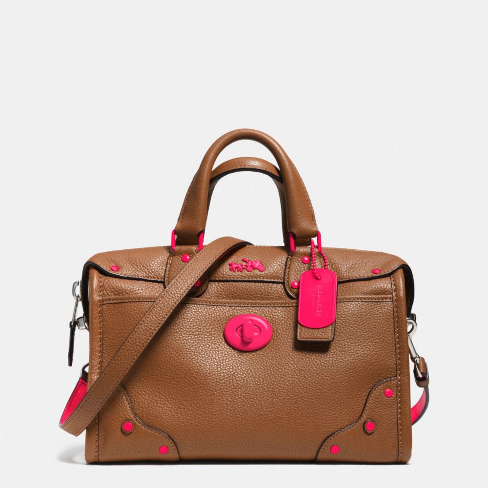 COACH F34556 C.O.A.C.H. RHYDER 24 SATCHEL IN CALF LEATHER NE/SADDLE-NEON-PINK HANDBAGS