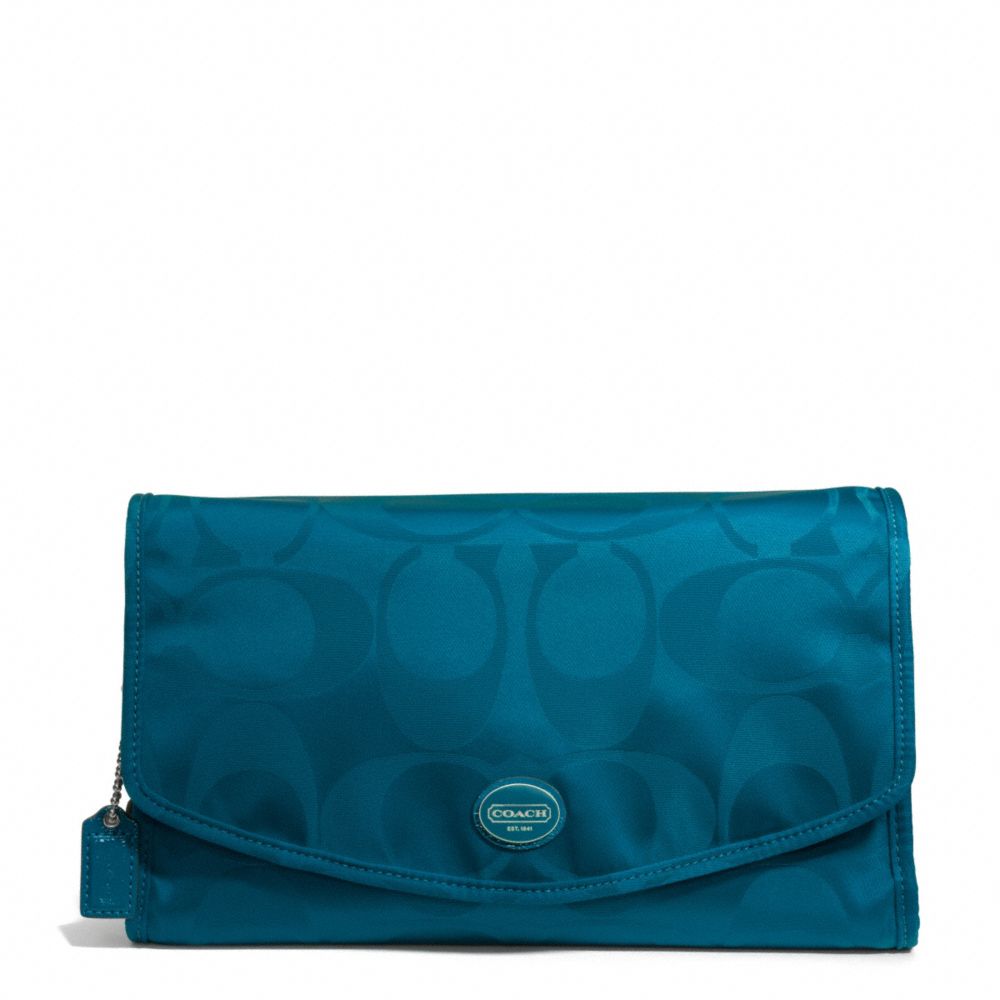 COACH F77392 GETAWAY SIGNATURE NYLON COSMETIC KIT SILVER/DARK-PLUME HANDBAGS