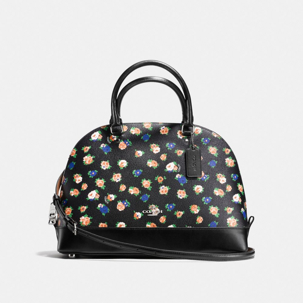 1. COACH f57924 - SIERRA SATCHEL IN TEA ROSE PRINT COATED CANVAS - SILVER/BLACK MULTI