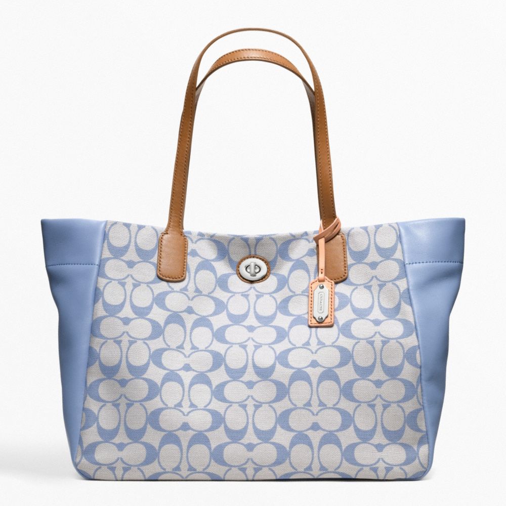 COACH F21236 - LEGACY WEEKEND PRINTED SIGNATURE EAST-WEST TURNLOCK TOTE - SILVER/GREY CHAMBRAY (click the link before for more detail)