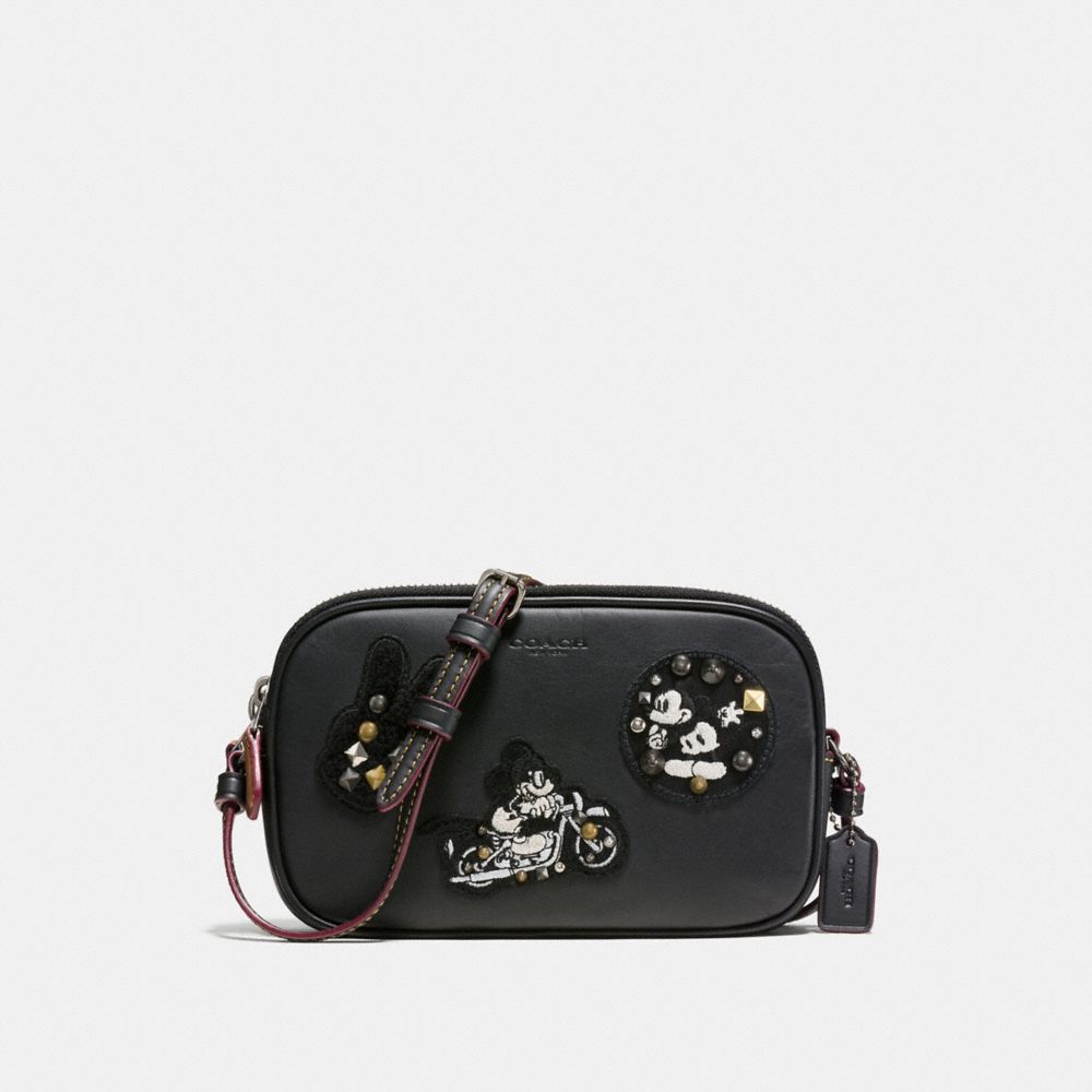 1. COACH f59532 - CROSSBODY POUCH IN GLOVE CALF LEATHER WITH MICKEY PATCHES - ANTIQUE NICKEL/BLACK MULTI