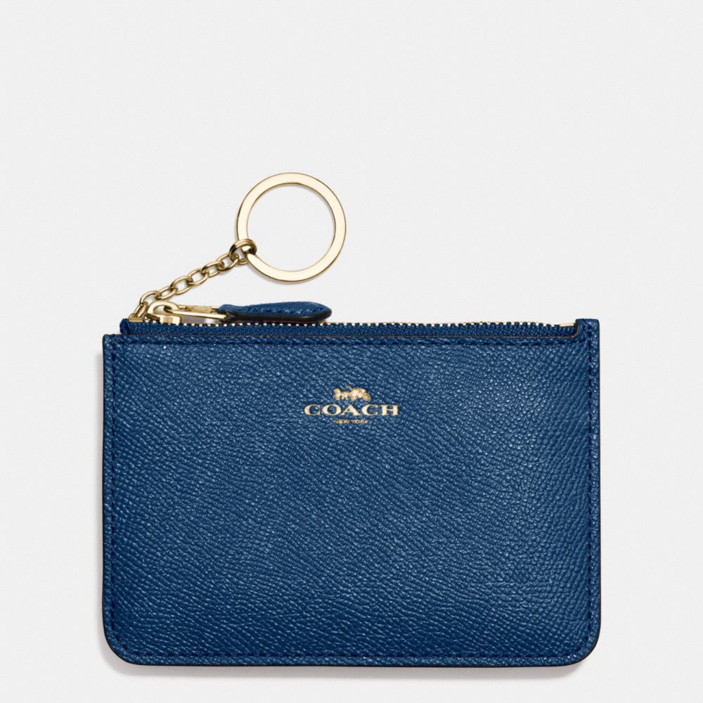 1. COACH f57854 - KEY POUCH WITH GUSSET IN CROSSGRAIN LEATHER - IMITATION GOLD/MARINA