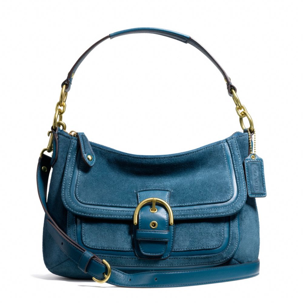 COACH F25302 - CAMPBELL SUEDE SMALL CONVERTIBLE HOBO - BRASS/TEAL - HANDBAGS