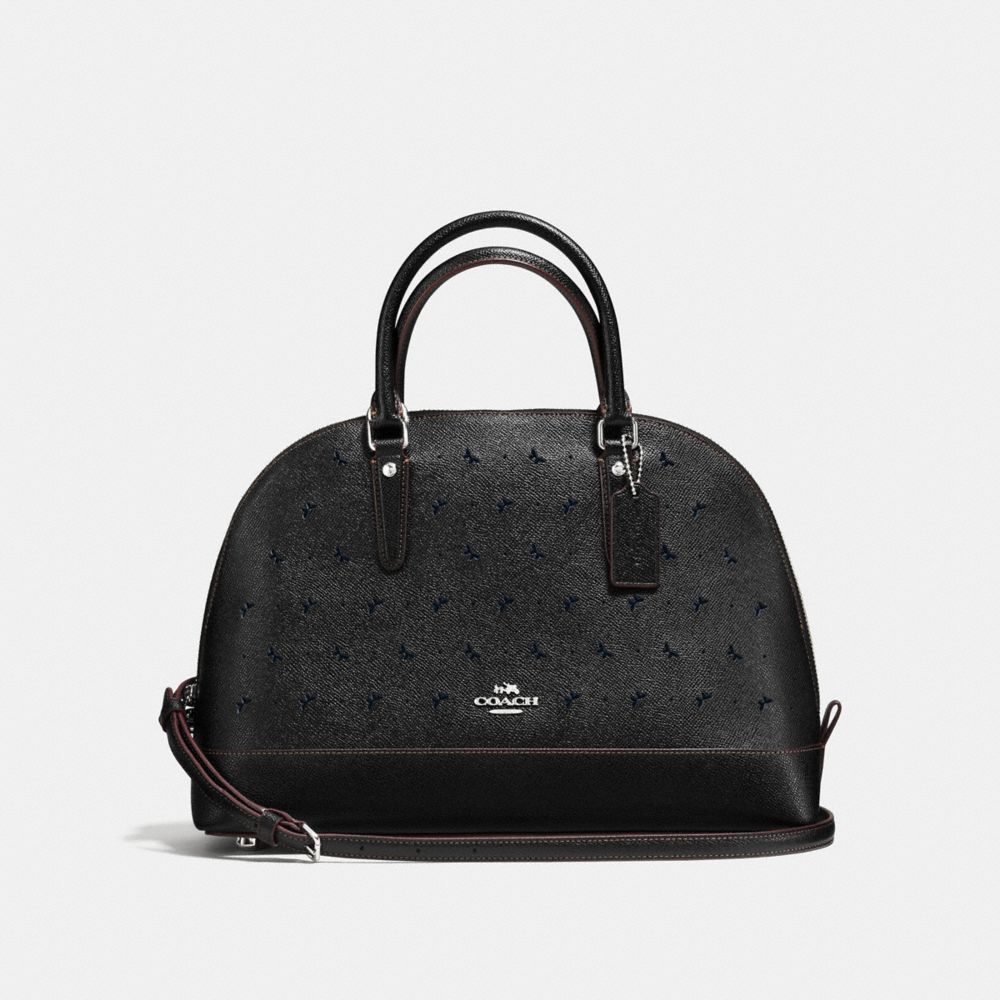 1. COACH f59344 - SIERRA SATCHEL IN PERFORATED CROSSGRAIN LEATHER - SILVER/BLACK