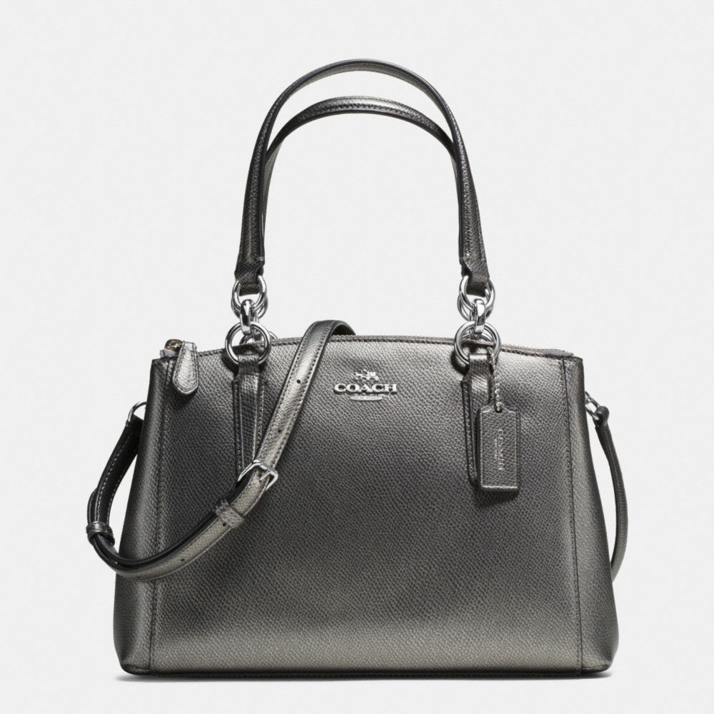 COACH F36704 MINI CHRISTIE CARRYALL IN CROSSGRAIN LEATHER SILVER/GUNMETAL HANDBAGS