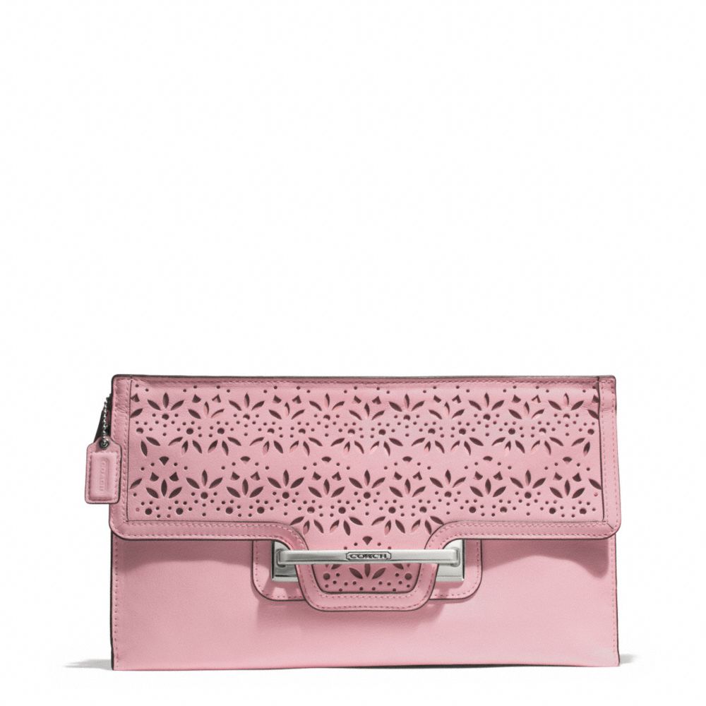 COACH F51385 TAYLOR EYELET LEATHER ZIP CLUTCH SILVER/PINK-TULLE HANDBAGS