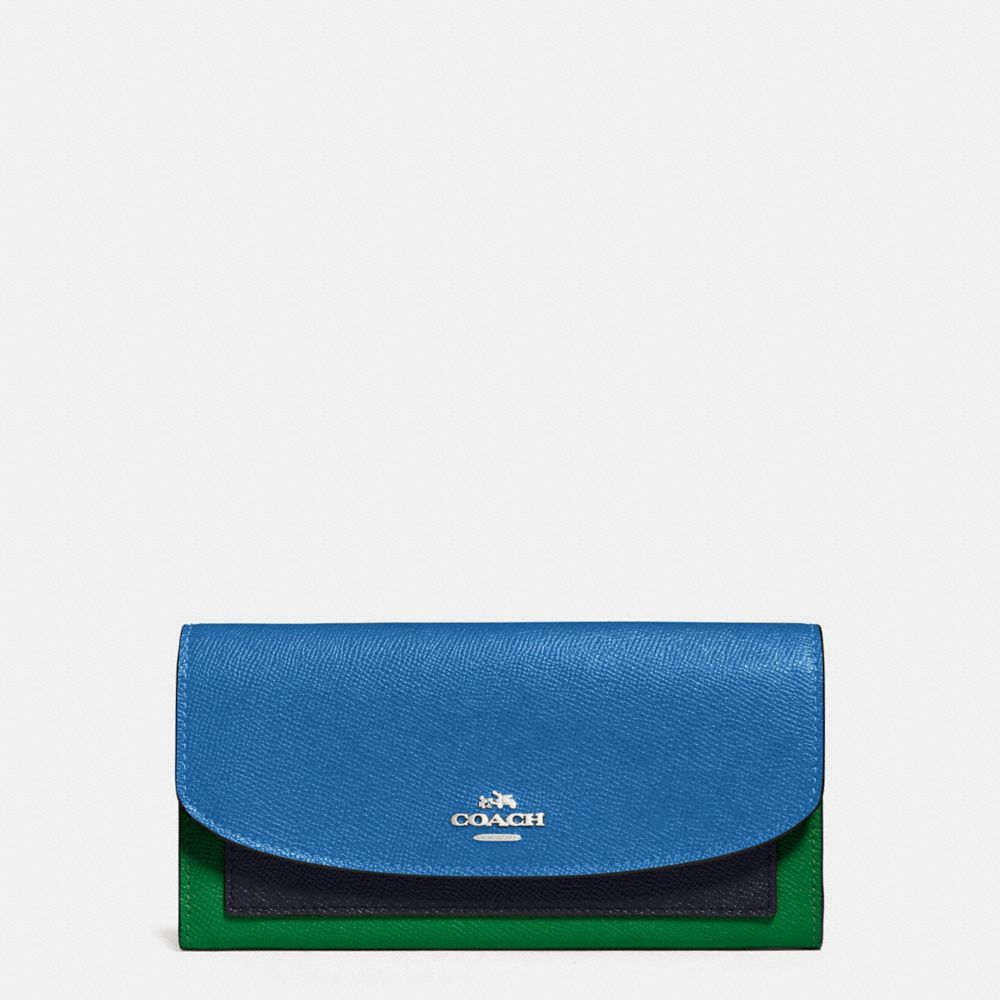 1. COACH f56492 - SLIM ENVELOPE WALLET IN GEOMETRIC COLORBLOCK CROSSGRAIN LEATHER - SILVER/LAPIS