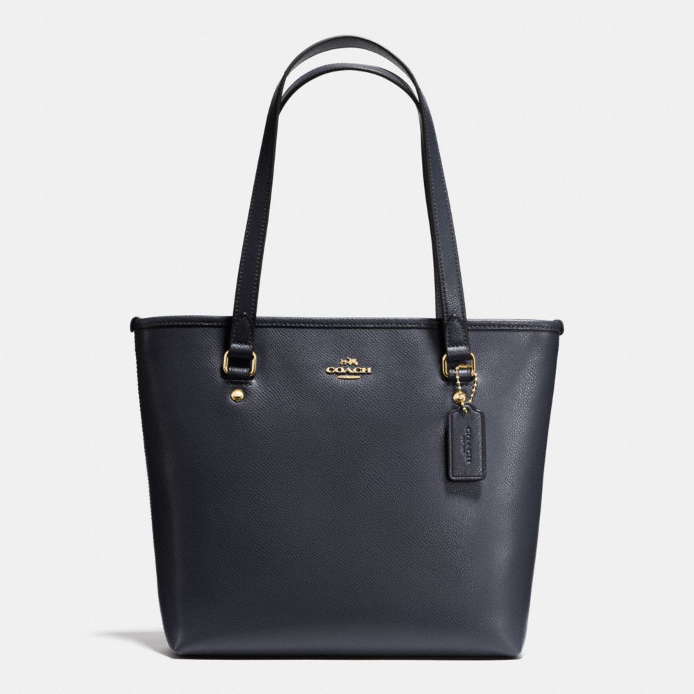 COACH F36632 - ZIP TOP TOTE IN CROSSGRAIN LEATHER - IMITATION-GOLD/MIDNIGHT - HANDBAGS
