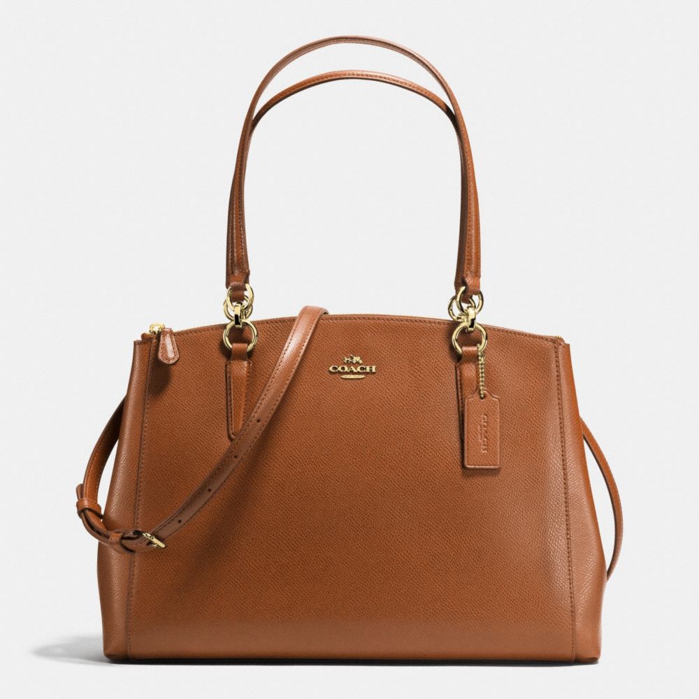 COACH F36606 CHRISTIE CARRYALL IN CROSSGRAIN LEATHER IMITATION-GOLD/SADDLE HANDBAGS