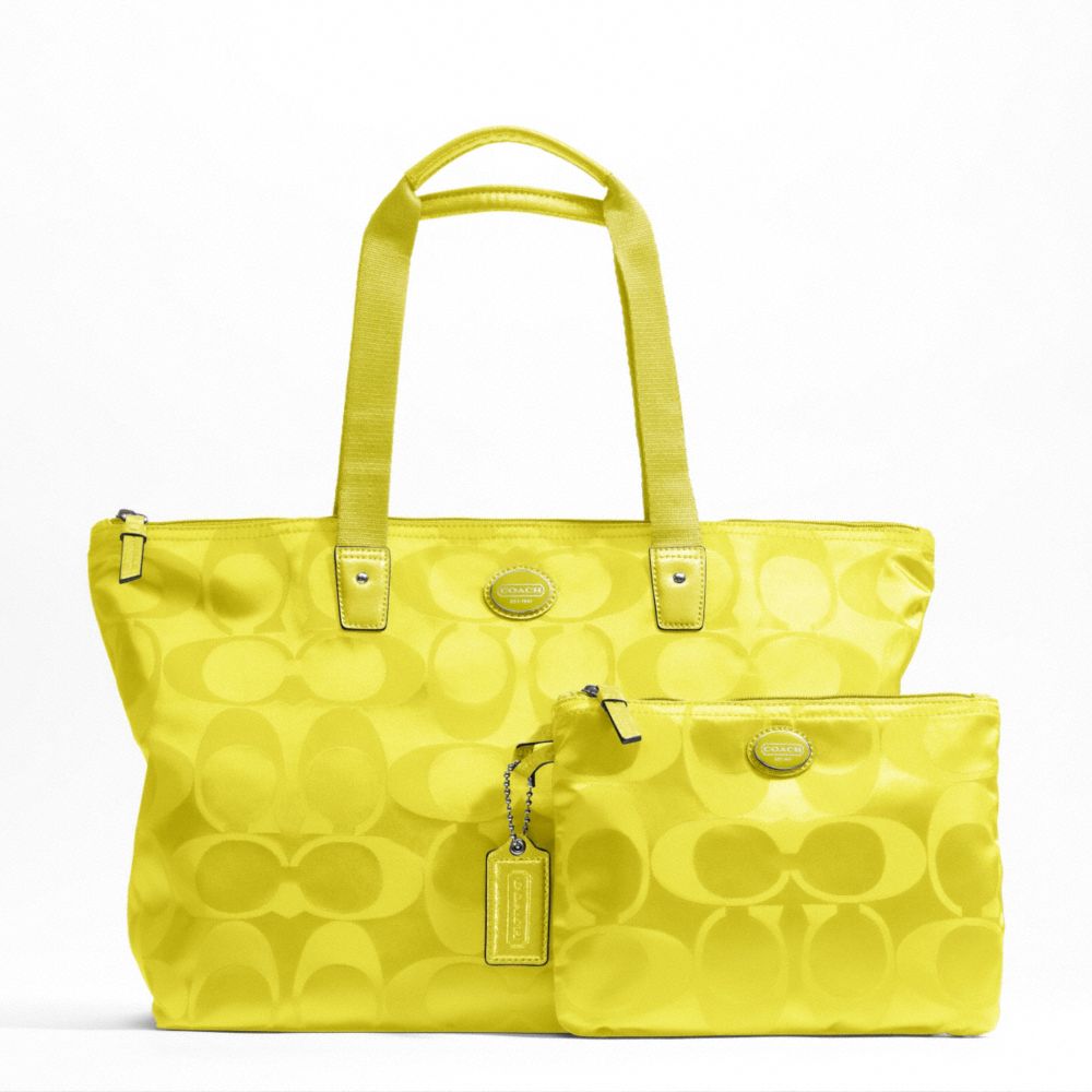 COACH F77321 GETAWAY SIGNATURE NYLON PACKABLE WEEKENDER SILVER/CITRINE HANDBAGS