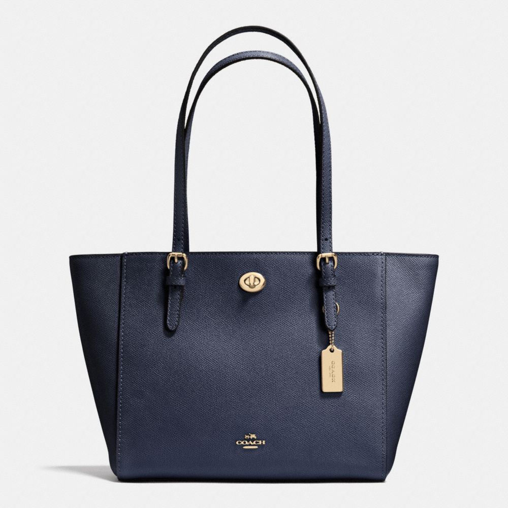 COACH F36455 TURNLOCK SMALL TOTE IN CROSSGRAIN LEATHER LIGHT-GOLD/NAVY HANDBAGS