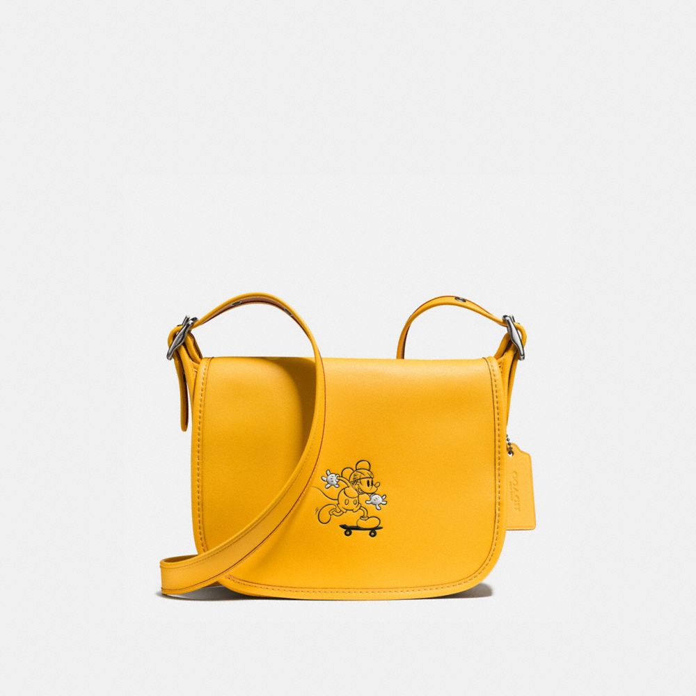 COACH F59359 PATRICIA SADDLE 23 IN GLOVE CALF LEATHER WITH MICKEY BLACK-ANTIQUE-NICKEL/BANANA HANDBAGS