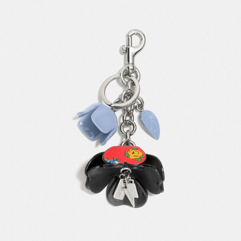 COACH F58517 - FLORAL RESIN AND COATED CANVAS TEA ROSE BAG CHARM - SILVER/CORNFLOWER - HANDBAGS