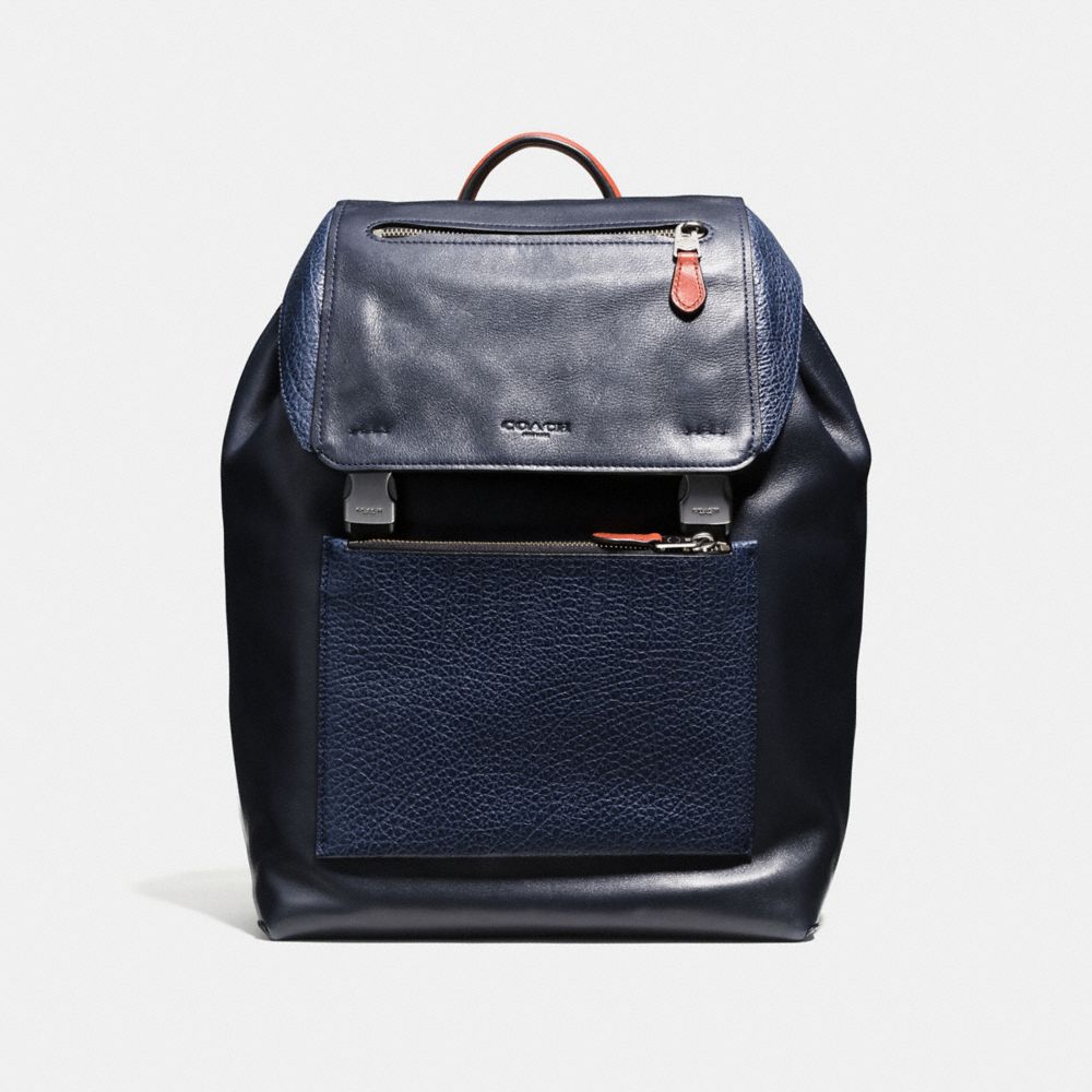 COACH F57759 - MANHATTAN BACKPACK IN MIXED LEATHERS - BLACK-ANTIQUE-NICKEL/INDIGO - HANDBAGS