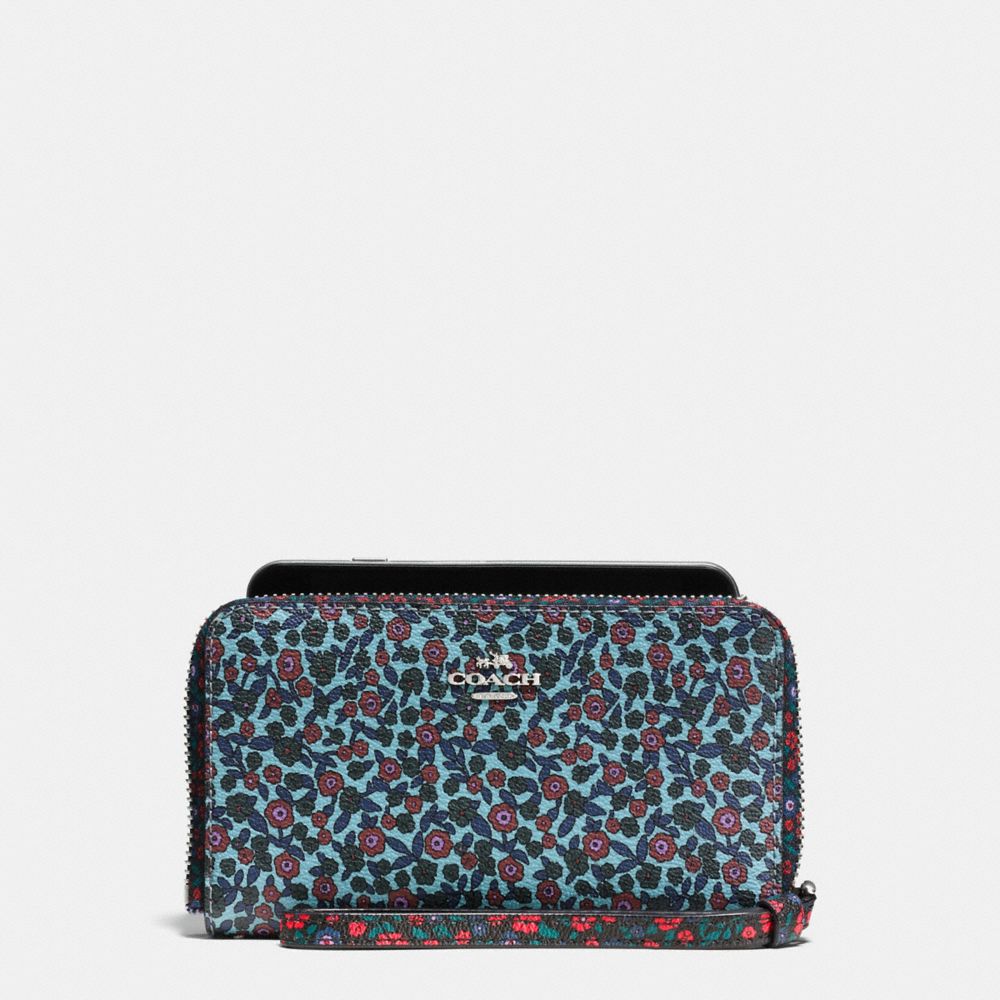 1. COACH f59342 - PHONE WALLET IN RANCH FLORAL PRINT MIX COATED CANVAS - SILVER/MULTI