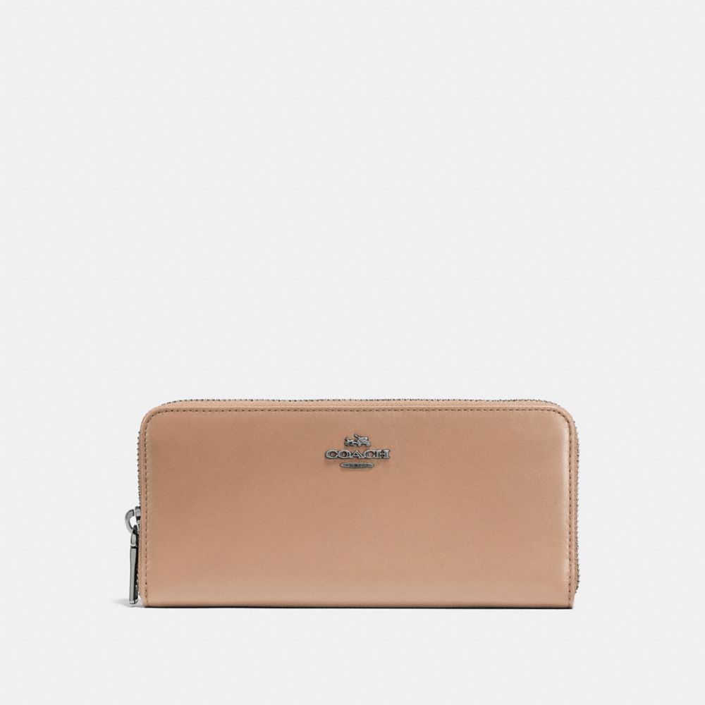 1. COACH f53707 - SLIM ACCORDION ZIP WALLET IN SMOOTH CALF LEATHER - DARK GUNMETAL/BEECHWOOD