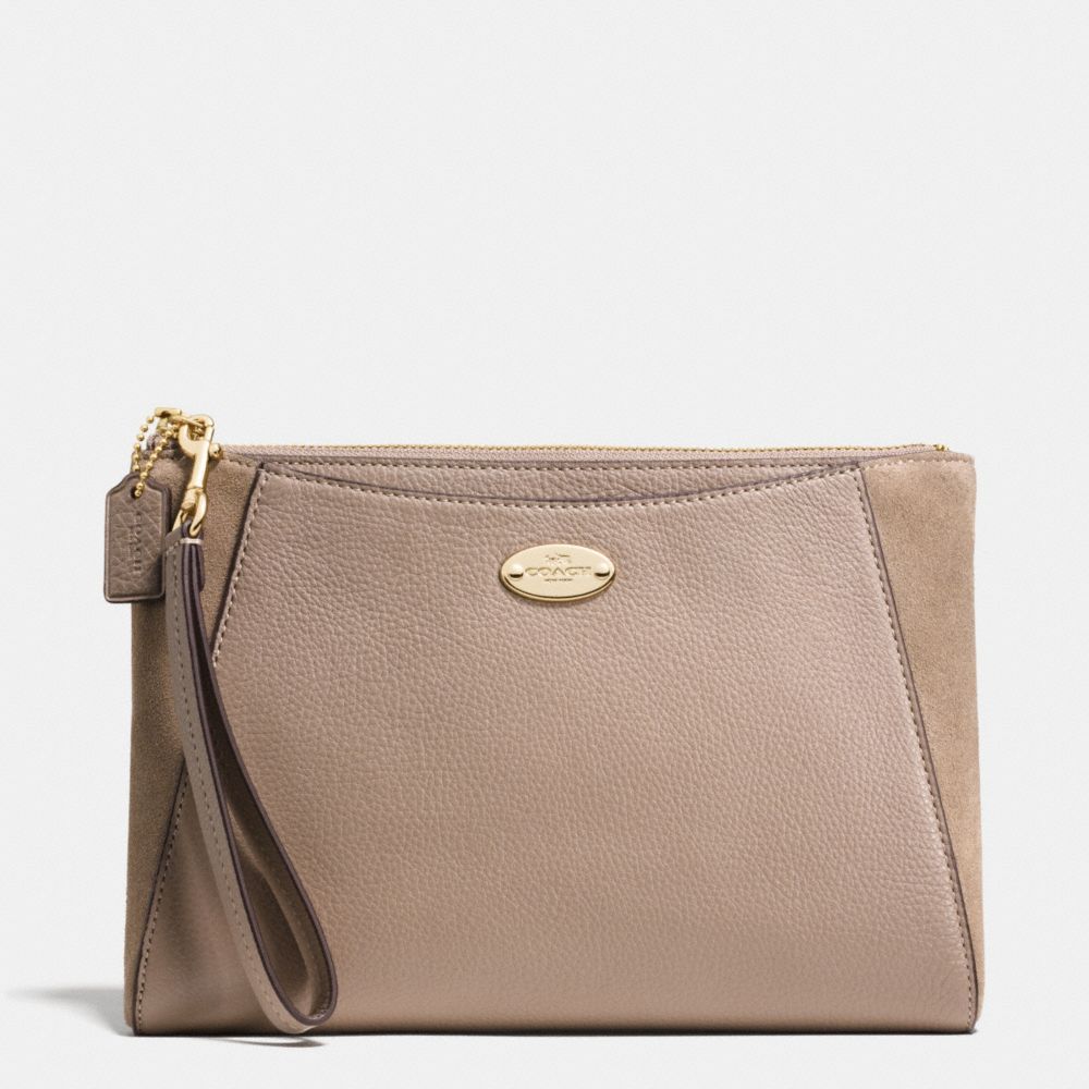 COACH F53419 MORGAN CLUTCH 24 IN EXOTIC TRIM LEATHER LIGHT-GOLD/STONE HANDBAGS