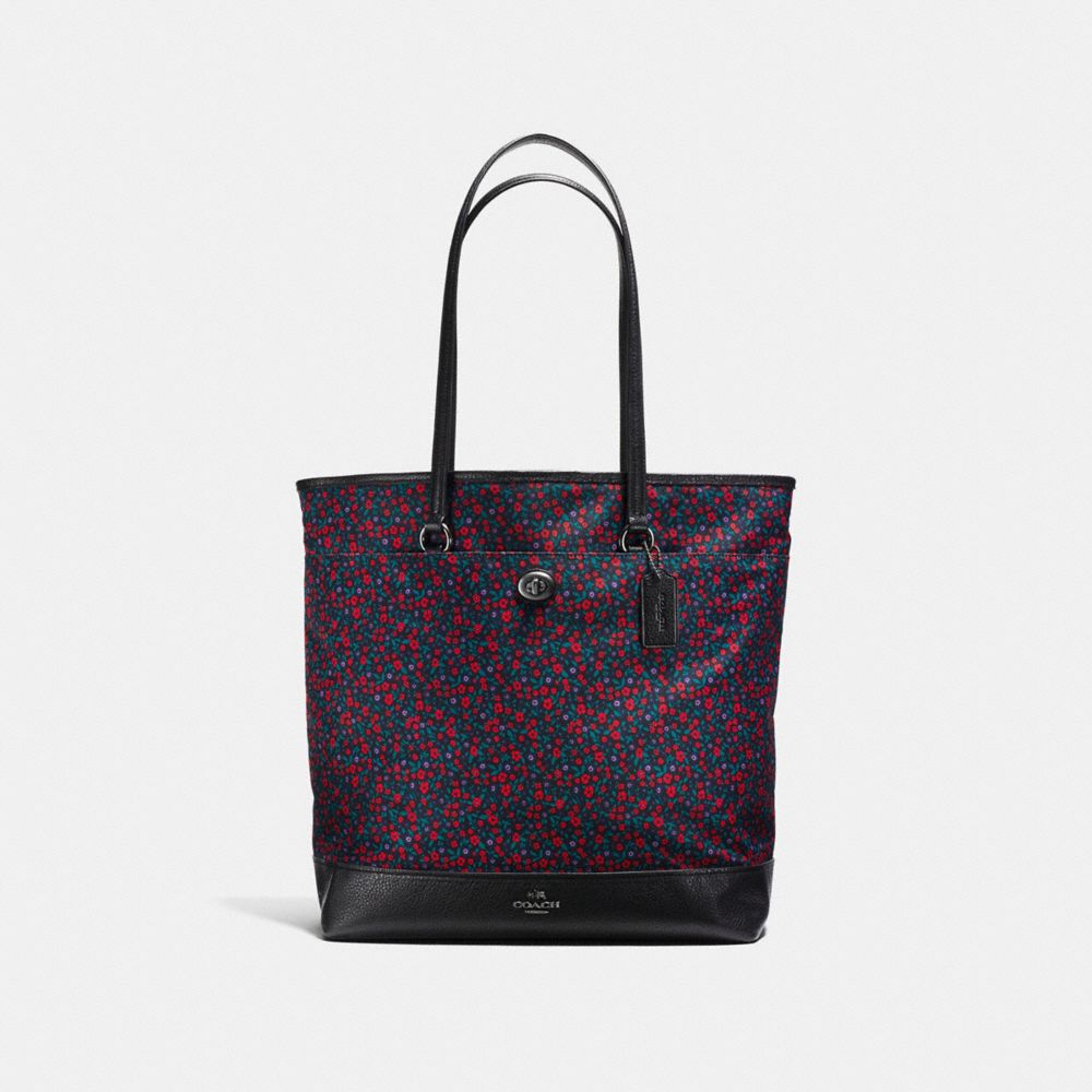 COACH F59435 TOTE IN RANCH FLORAL PRINT NYLON BLACK-ANTIQUE-NICKEL/BRIGHT-RED HANDBAGS
