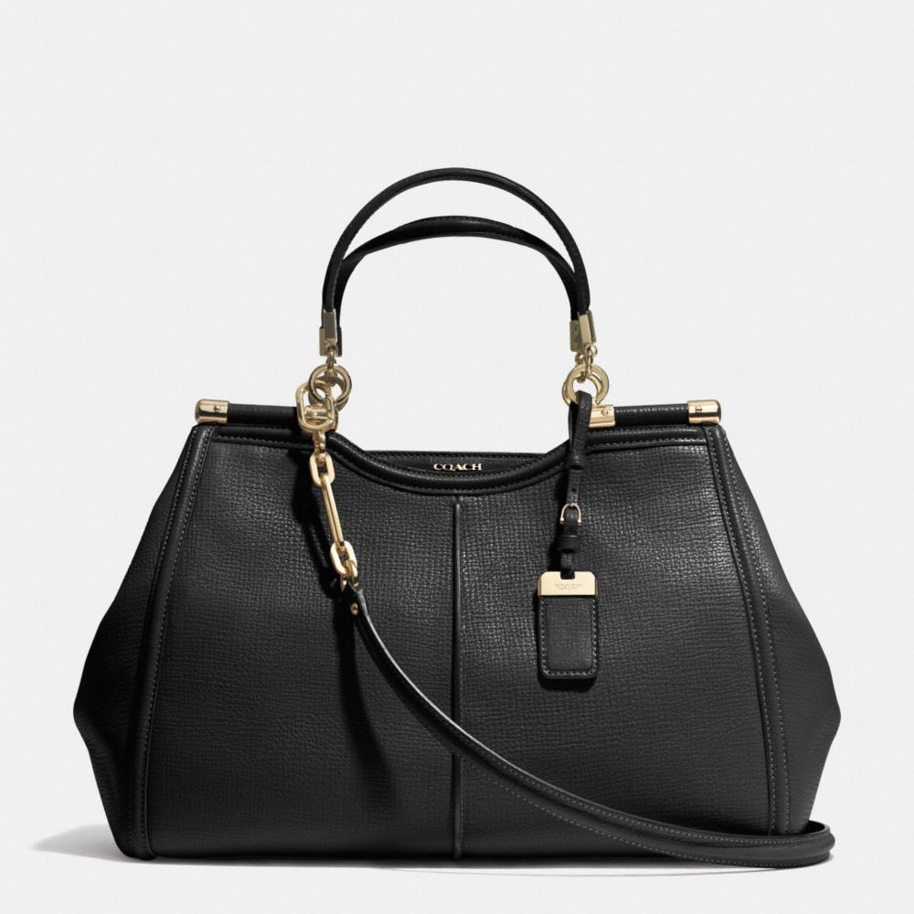 COACH F32378 MADISON TEXTURED LEATHER PINNACLE CAROLINE SATCHEL -LIGHT-GOLD/BLACK HANDBAGS