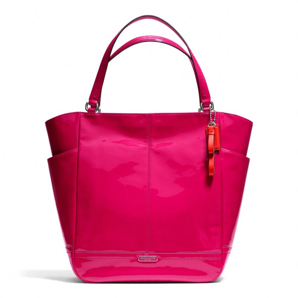 COACH F24893 - PARK PATENT NORTH/SOUTH TOTE - SILVER/RASPBERRY - HANDBAGS