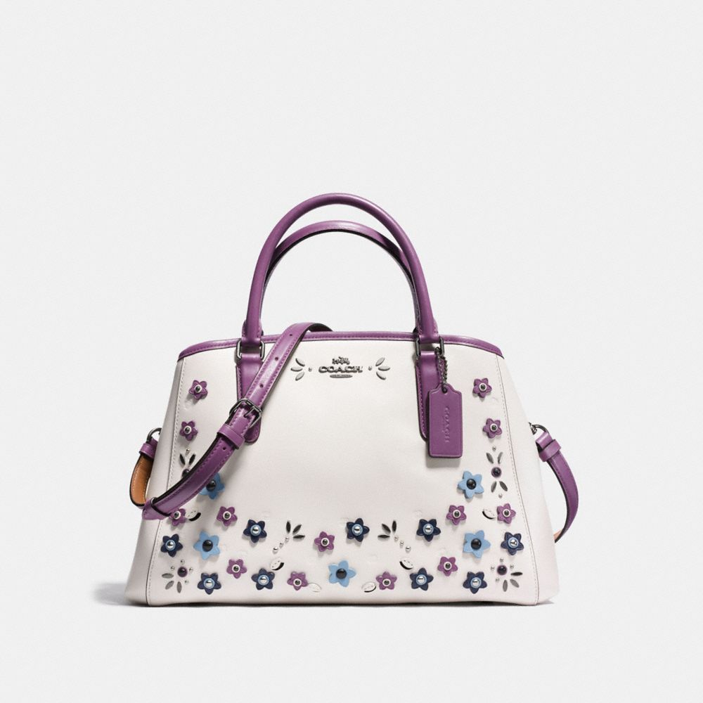 COACH F59449 - SMALL MARGOT CARRYALL IN NATURAL REFINED LEATHER WITH FLORAL APPLIQUE - BLACK ANTIQUE NICKEL/CHALK MULTI (click the link before for more detail)
