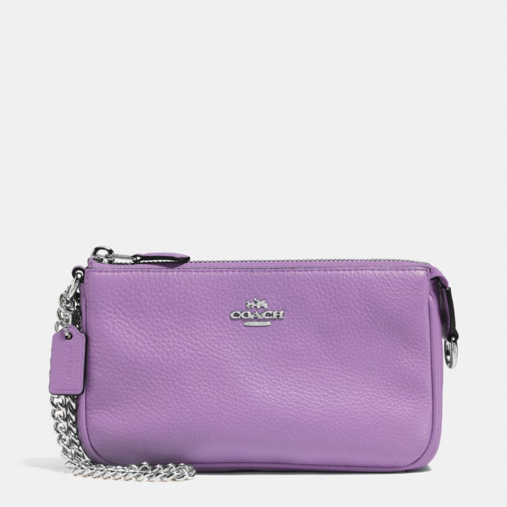 COACH F53340 - LARGE WRISTLET 19 IN PEBBLE LEATHER - SILVER/LILAC - HANDBAGS