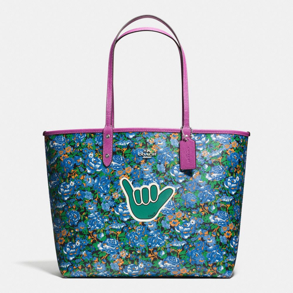 COACH F57667 REVERSIBLE CITY TOTE IN ROSE MEADOW PRINT COATED CANVAS SILVER/BLUE-MULTI-HYACINTH HANDBAGS