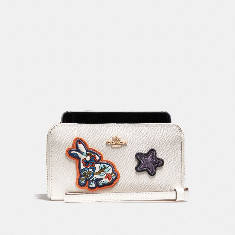 1. COACH f20977 - PHONE WALLET IN CROSSGRAIN LEATHER WITH VARSITY PATCHES - LIGHT GOLD/CHALK