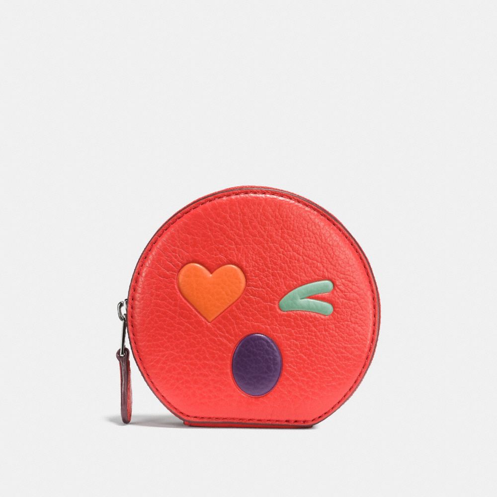 1. COACH f11727 - HEART ROUND COIN CASE IN GLOVETANNED LEATHER - SILVER/MULTICOLOR 1