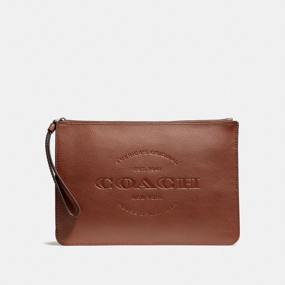 COACH F11482 - HUDSON POUCH - BLACK ANTIQUE NICKEL/DARK SADDLE (click the link before for more detail)