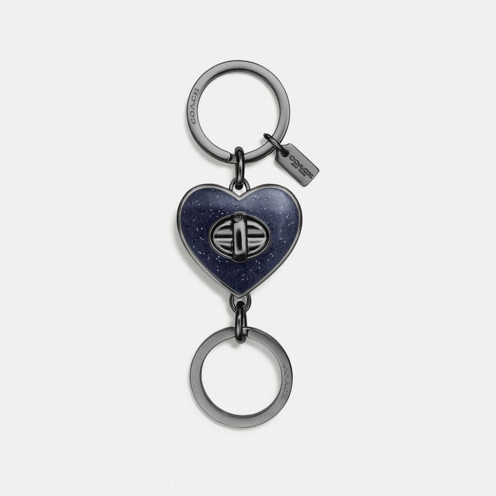 1. COACH f58512 - GLITTER ENAMEL TURNLOCK HEART BAG CHARM - DARK GUNMETAL/BLACK