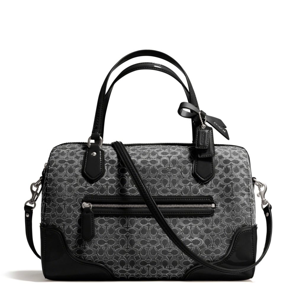 COACH F26426 POPPY EAST/WEST SATCHEL IN SIGNATURE METALLIC OUTLINE FABRIC - SILVER/BLACK/BLACK(click the link before for more detail)