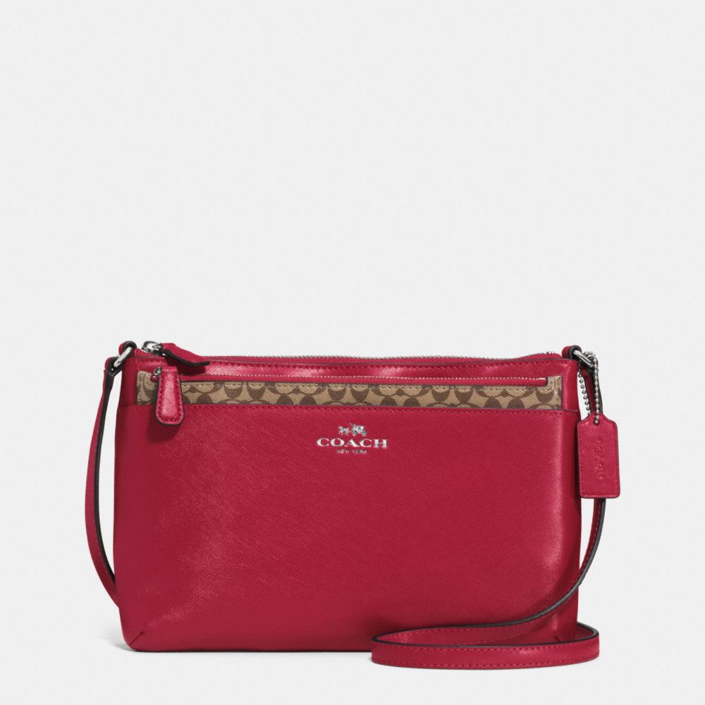 COACH F52206 DARCY LEATHER SWINGPAK WITH POP UP POUCH SILVER/RED HANDBAGS