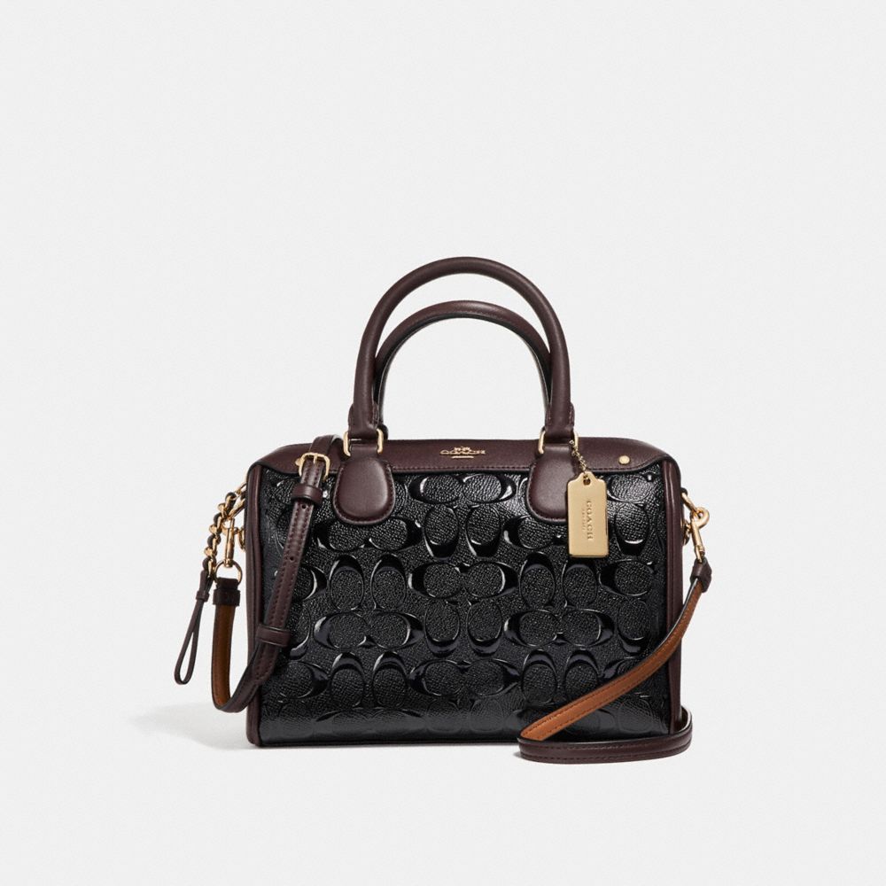 COACH F11920 MINI BENNETT SATCHEL IN SIGNATURE DEBOSSED PATENT LEATHER LIGHT-GOLD/BLACK HANDBAGS